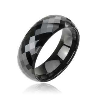 Popis produktu Lesklý wolframový prsten v černém odstínu - vybroušené kosočtverce, 8 mm - Velikost: 70