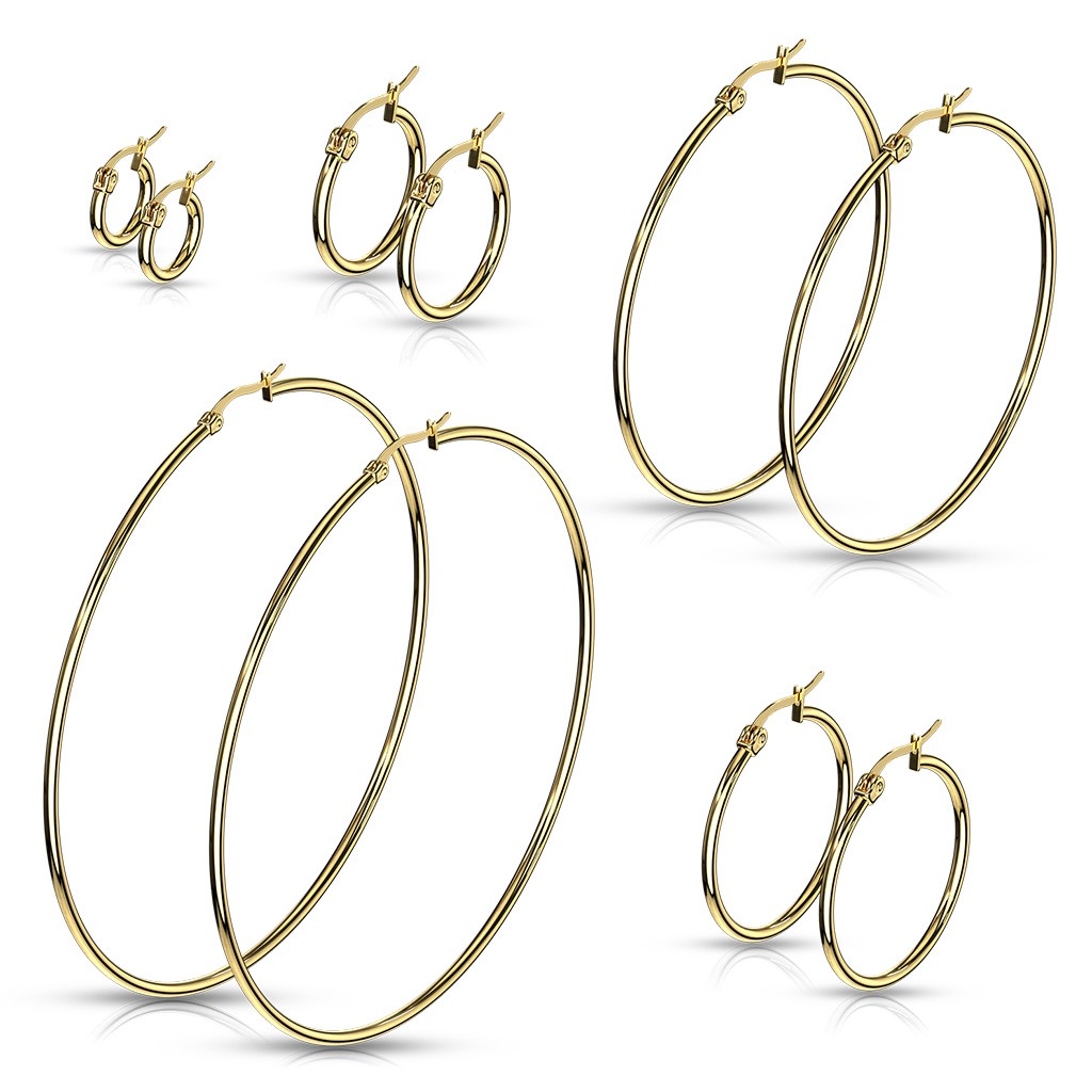 Kruhové náušnice z oceli 316L s francouzským zámkem - hladké, lesklé kruhy bez vzoru ve zlatém barevném provedení.Ceny zboží a skladovou dostupnost neustále aktualizujeme. Jsme si jistí, že toto ocení nejeden zákazník.