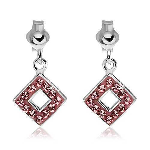 Stříbrné puzetky s visícím kosočtvercem a růžovými zirkony.V našem obchodě najdete nejvýhodnější ceny. Už se těšíte na svoji objednávku?