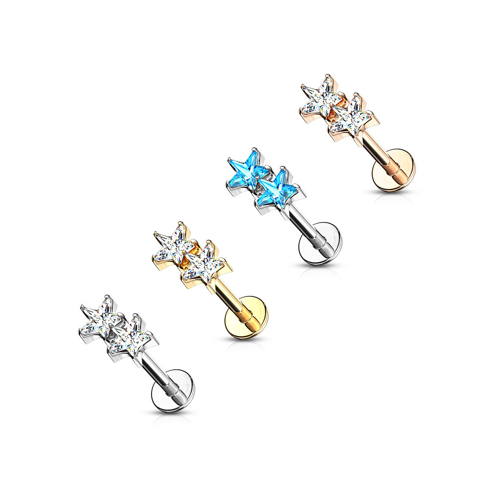 Labret piercing do brady, ucha nebo rtu z 316L oceli, zirkonové hvězdičky v kotlíku.Pozor, počet kusů na skladě může být u akčního zboží omezen. Udělejte si radost.