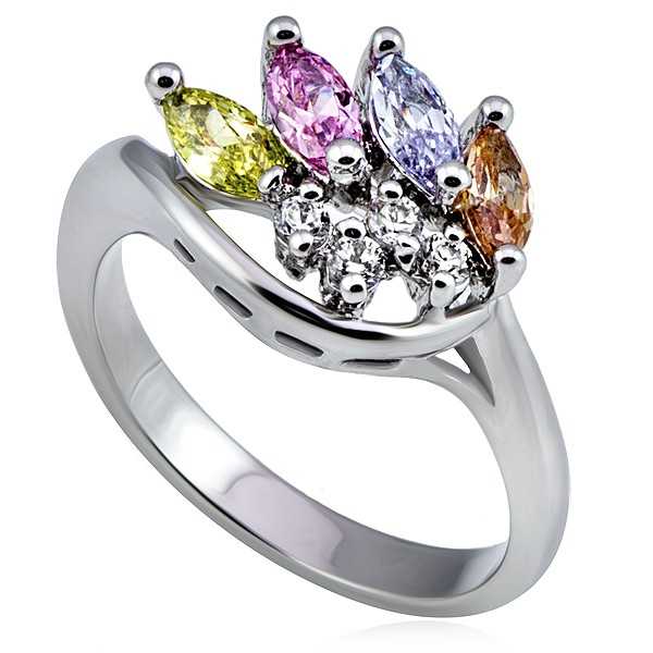 Popis produktu Stříbrný kovový prsten, korunka z barevných a čirých zirkonů - Velikost: 52