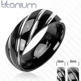 Černý prsten z titanu, diagonální rýhy po celém obvodu.Doporučujeme pouze prověřené prodejce a e-shopy. Garantujeme spokojenost z nákupu.