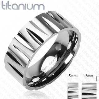 Popis produktu Titanový prsten zářezy ve tvaru náboje - Velikost: 49