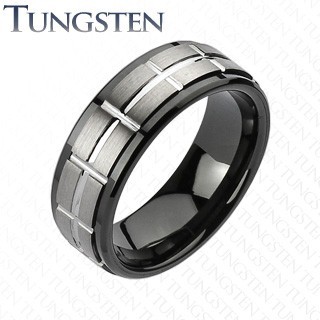 Wolframový broušený prsten, černé okraje - Velikost: 68