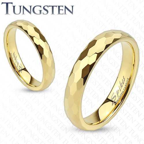 Wolframový prsten - zlatý kroužek s broušením do šestihranů - Velikost: 46